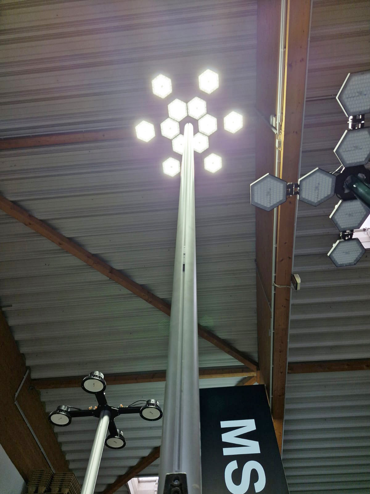 Überteuerte Abhängepunkte für Beleuchtung strapazieren jedes Messebudget. Dafür haben wir eine attraktive und kostengünstige Alternative Der Aufbau des MS-HighLight-Lichtmast dauert zu zweit nur zehn Minuten.