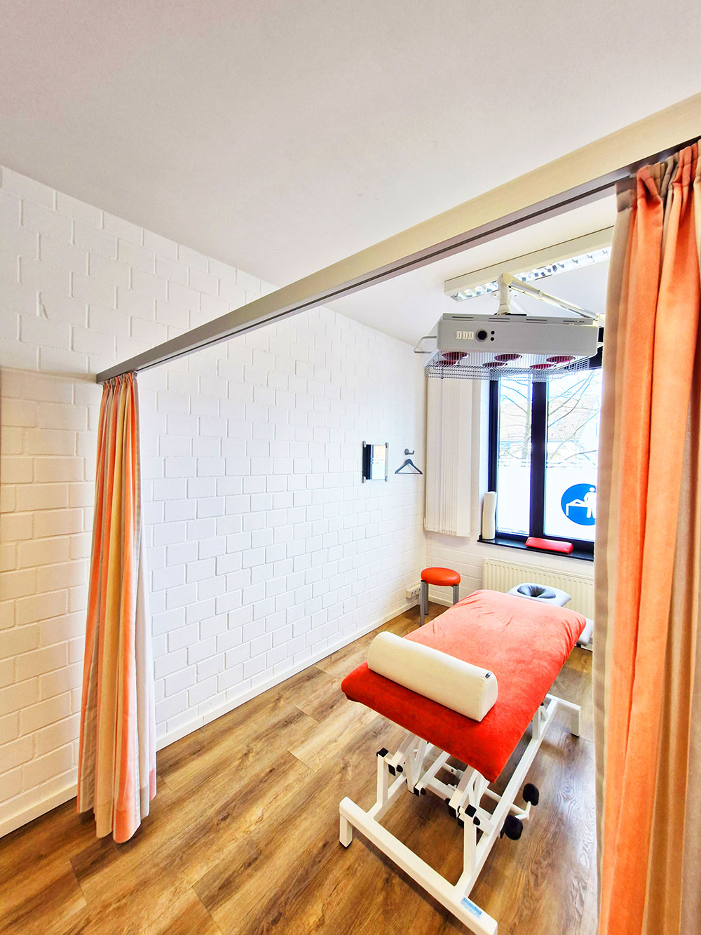 Erstellung von Massagekabinen, Zugang durch einen zuziehbaren Vorhang.